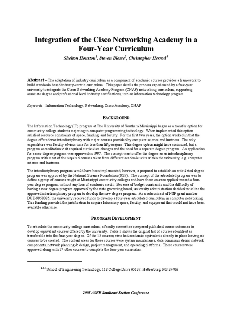 Integration of The Cisco Networking Academy in A Four Year Program